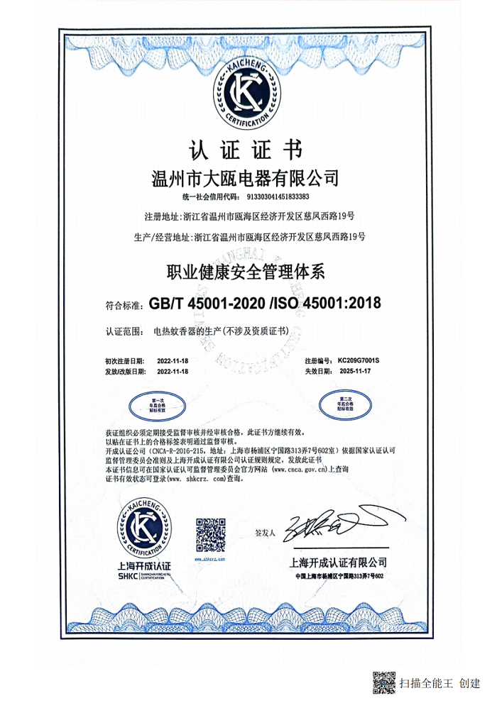 溫州市大甌電器有限公司(以下簡稱大甌公司)是集研發、制造為一體的日化電器專業生產制造商。